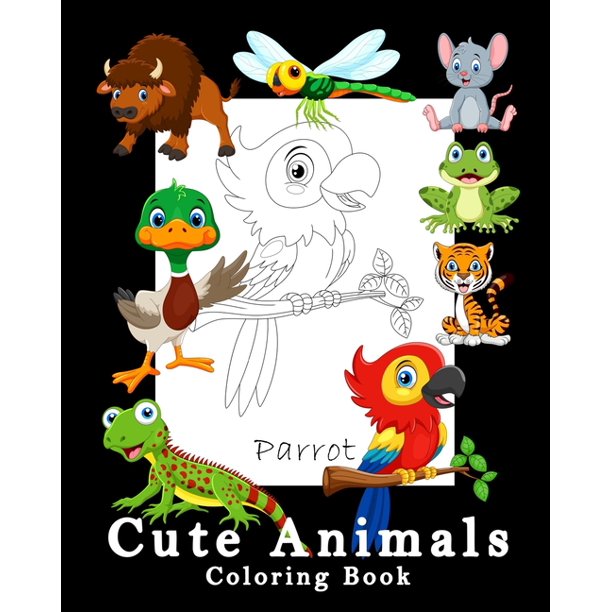Cute Animals Coloring Book For Kids Children Ages 4 8 8 12 Super Cute Easy Animal Book With The Name Of The Animal On The Coloring Page For Beginners Contains Zoo Farm Wild Ocean